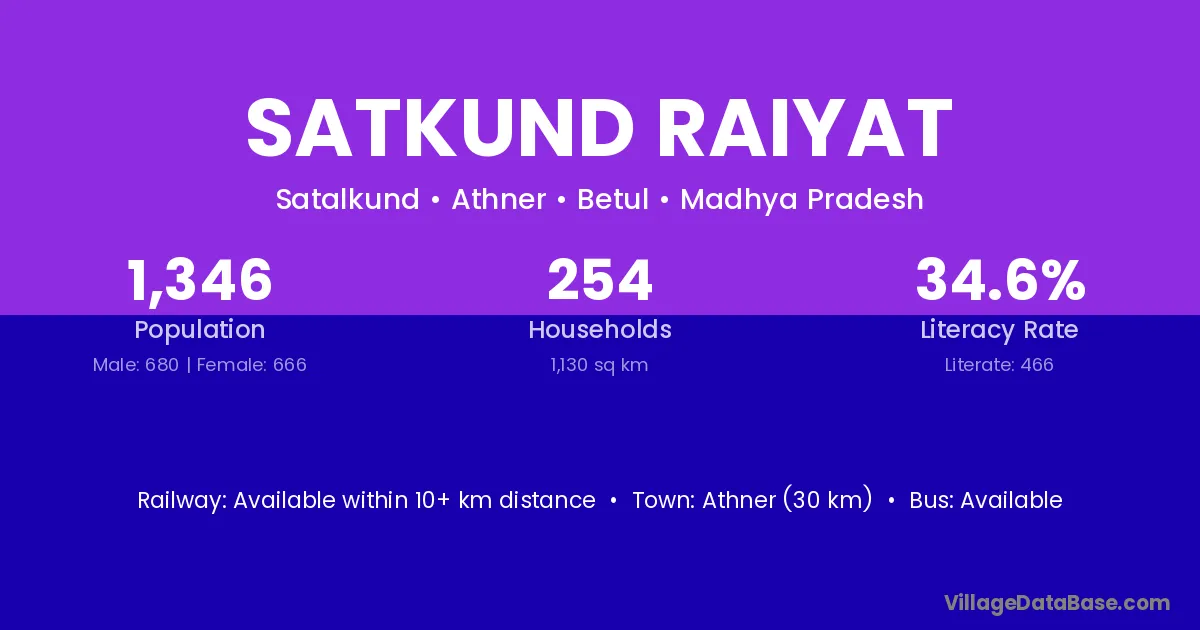 Satkund Raiyat village has a total population of 1,346 people, of which 680 are males and 666 are females.
