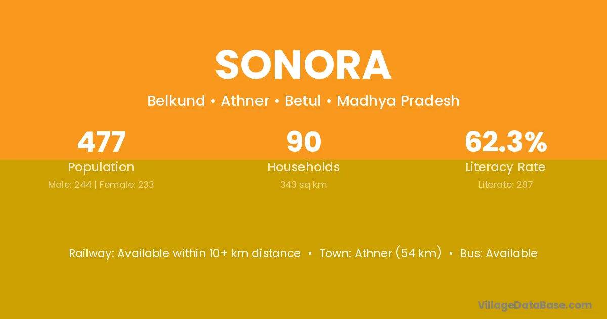 Sonora village has a total population of 477 people, of which 244 are males and 233 are females.
