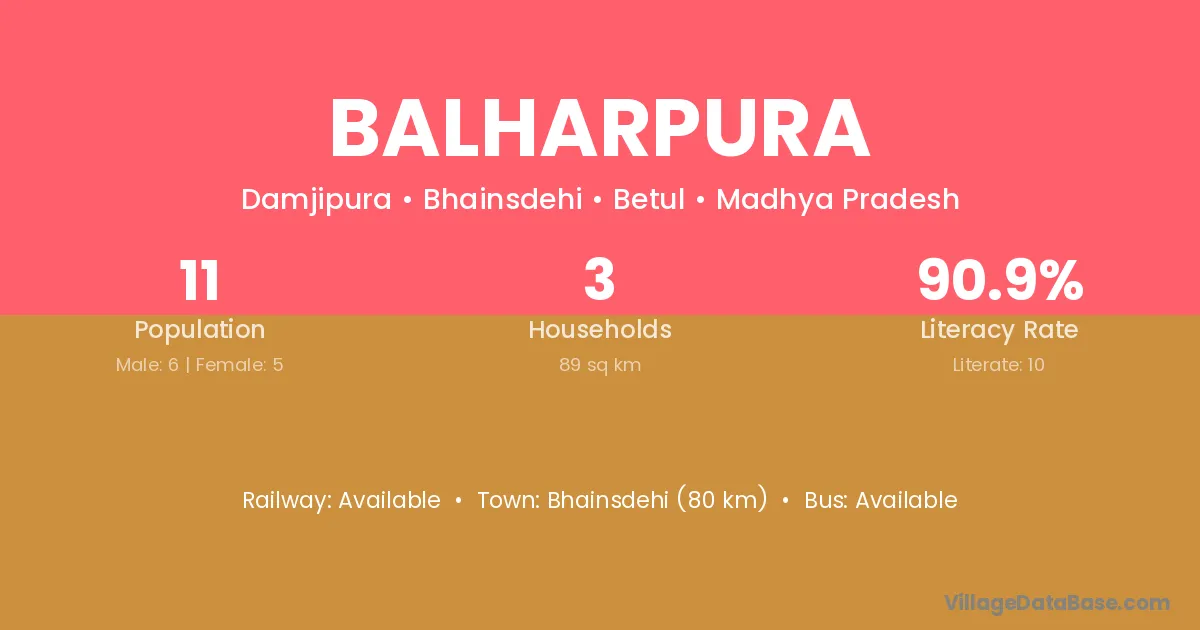 Bhainsdehi (80 km) is the nearest town to Balharpura village for major economic activities and is located approximately 80 km away.