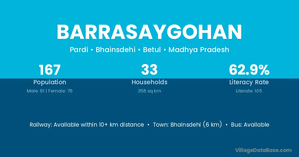Bhainsdehi (6 km) is the nearest town to Barrasaygohan village for major economic activities and is located approximately 6 km away.