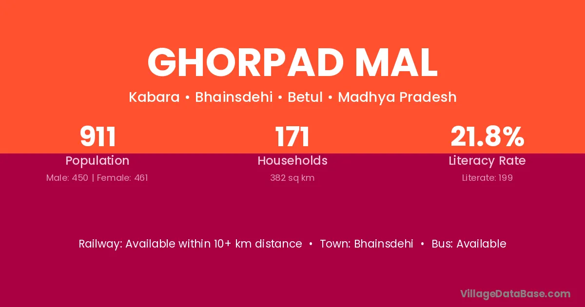 Ghorpad Mal village has a total population of 911 people, of which 450 are males and 461 are females.