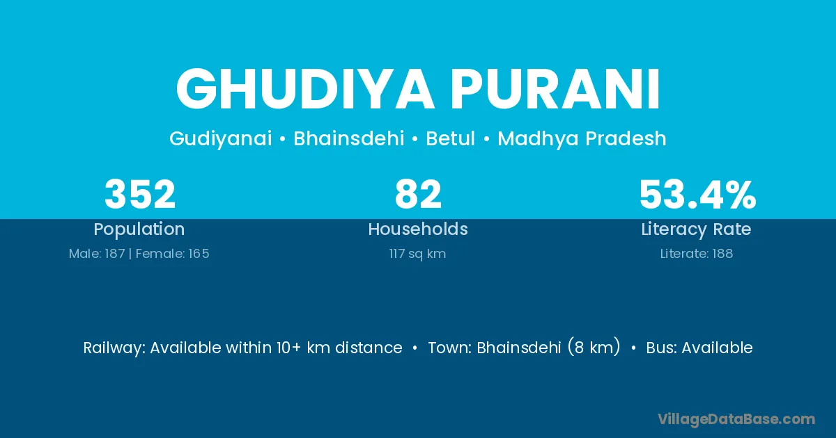 Ghudiya Purani village has a total population of 352 people, of which 187 are males and 165 are females.