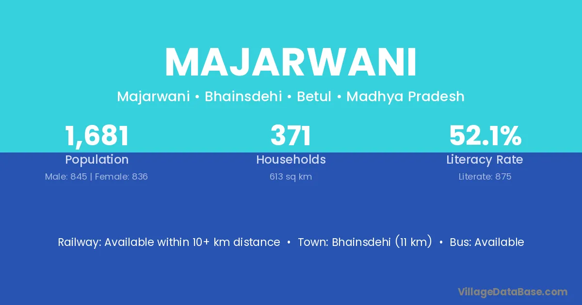 Bhainsdehi (11 km) is the nearest town to Majarwani village for major economic activities and is located approximately 11 km away.