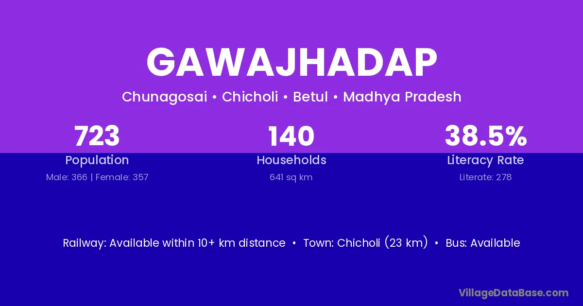 Chicholi (23 km) is the nearest town to Gawajhadap village for major economic activities and is located approximately 23 km away.