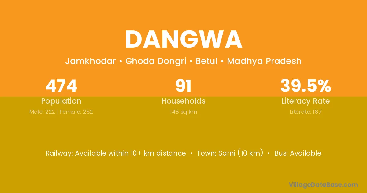Sarni (10 km) is the nearest town to Dangwa village for major economic activities and is located approximately 10 km away.