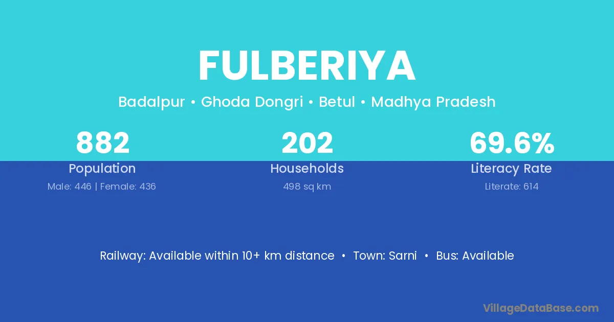 Fulberiya village has a total population of 882 people, of which 446 are males and 436 are females.