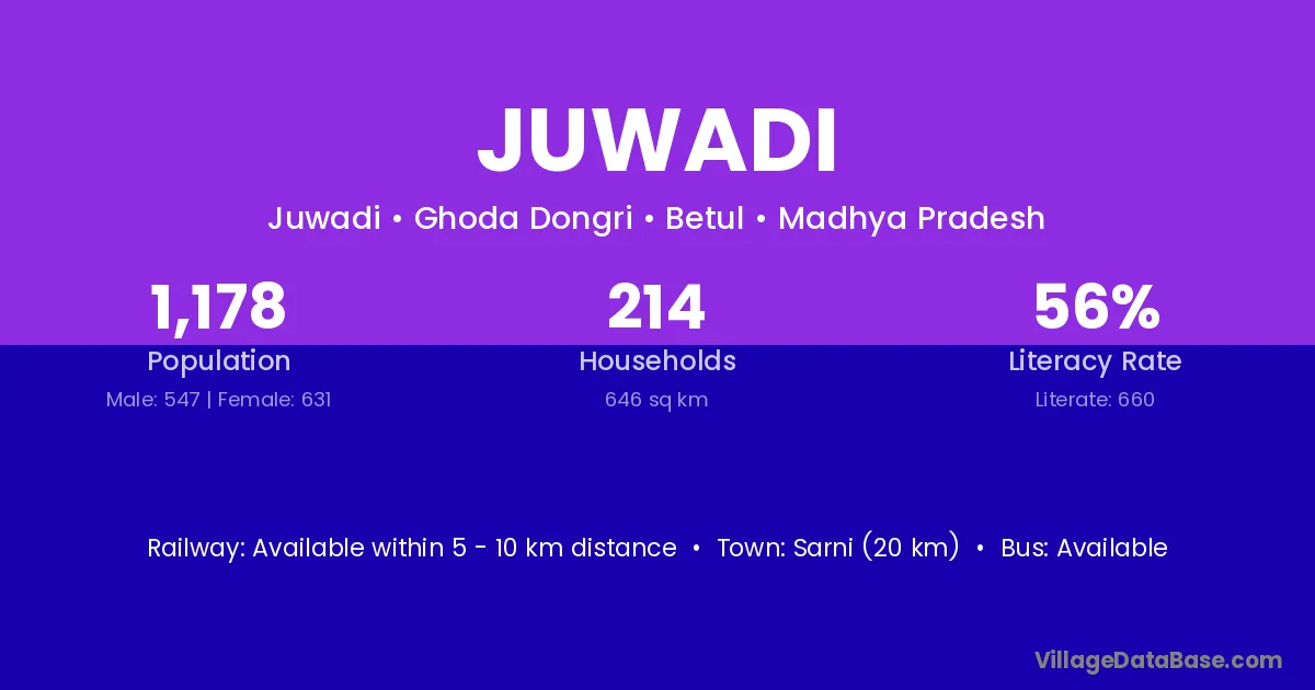 Sarni (20 km) is the nearest town to Juwadi village for major economic activities and is located approximately 20 km away.