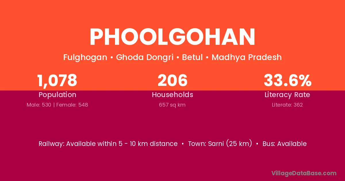 Sarni (25 km) is the nearest town to Phoolgohan village for major economic activities and is located approximately 25 km away.