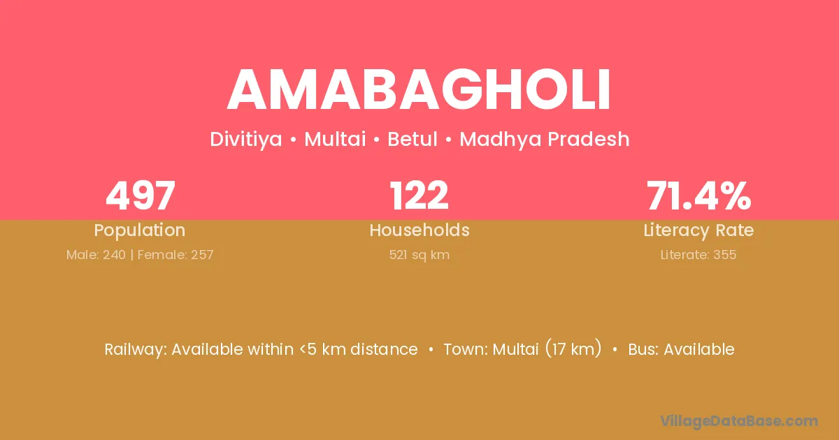 Multai (17 km) is the nearest town to Amabagholi village for major economic activities and is located approximately 17 km away.