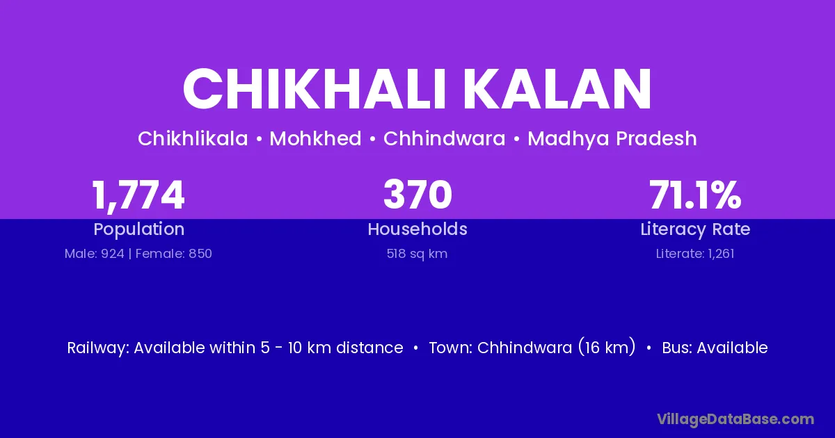 Multai (20 km) is the nearest town to Chikhali Kalan village for major economic activities and is located approximately 20 km away.
