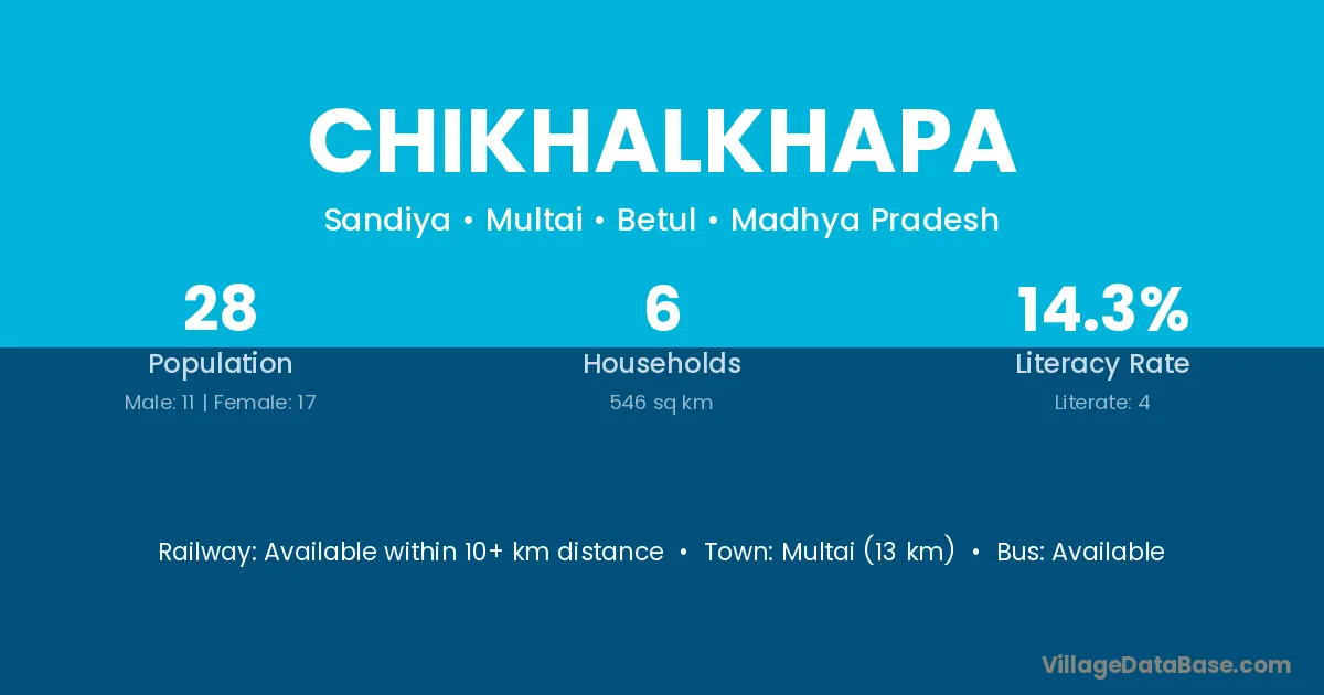 Multai (13 km) is the nearest town to Chikhalkhapa village for major economic activities and is located approximately 13 km away.