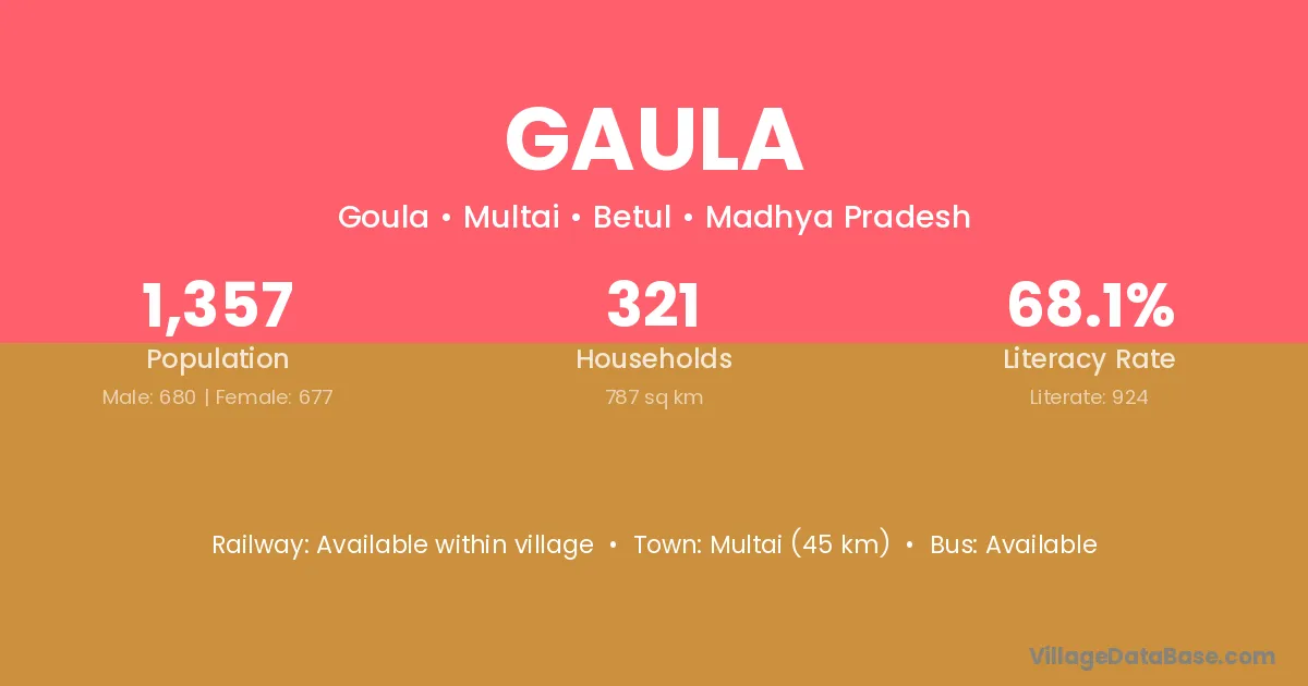 Multai (45 km) is the nearest town to Gaula village for major economic activities and is located approximately 45 km away.