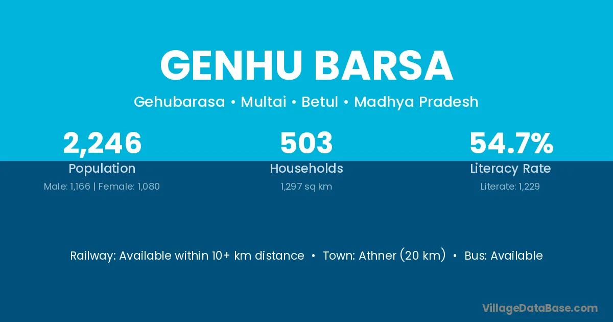 Genhu Barsa village has a total population of 2,246 people, of which 1,166 are males and 1,080 are females.