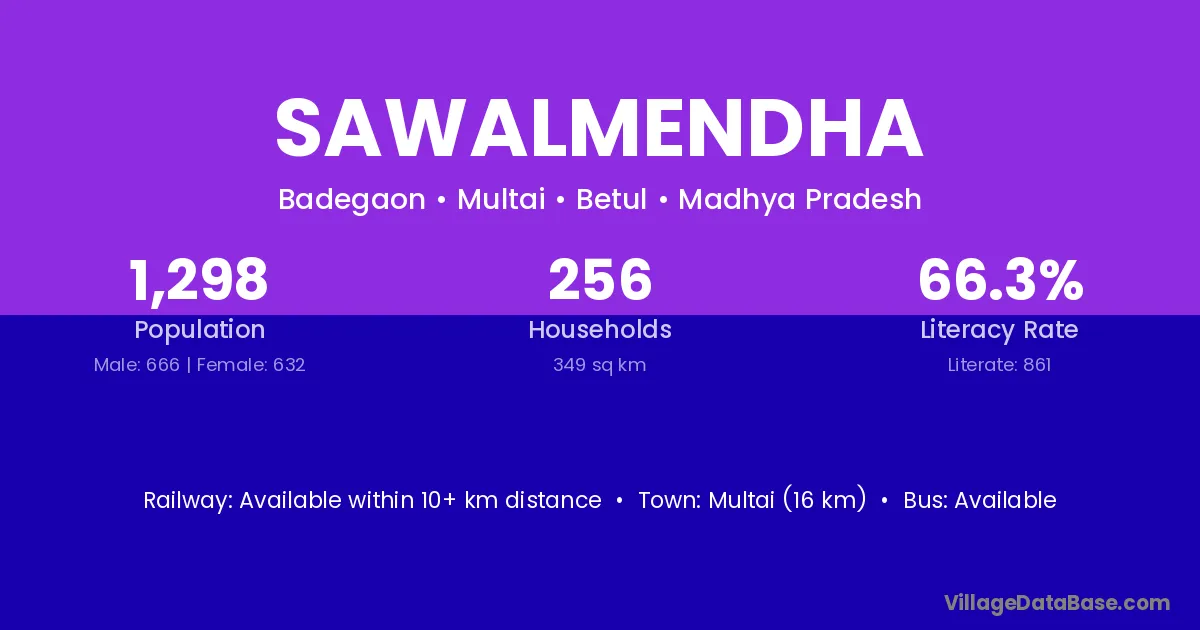 Multai (16 km) is the nearest town to Sawalmendha village for major economic activities and is located approximately 16 km away.