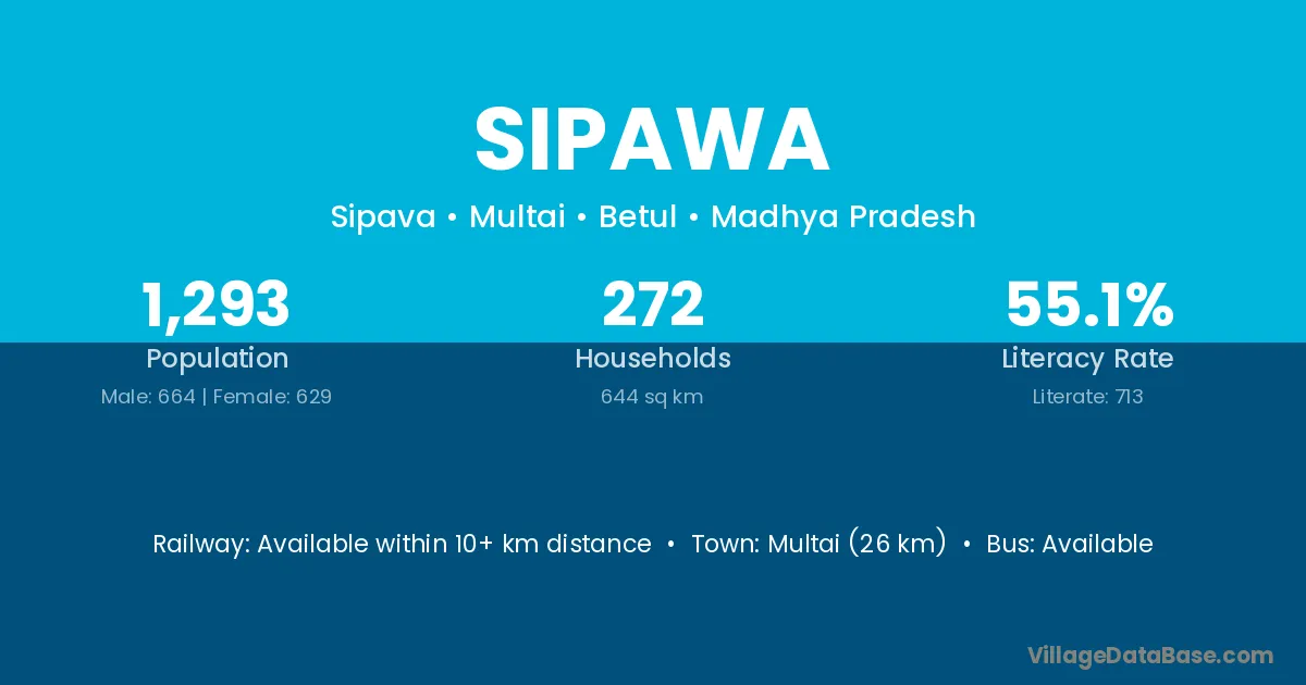 Multai (26 km) is the nearest town to Sipawa village for major economic activities and is located approximately 26 km away.