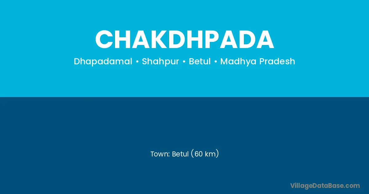 Betul (60 km) is the nearest town to Chakdhpada village for major economic activities and is located approximately 60 km away.
