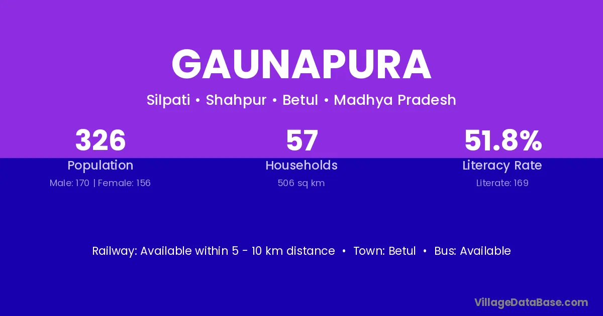 Gaunapura village has a total population of 326 people, of which 170 are males and 156 are females.