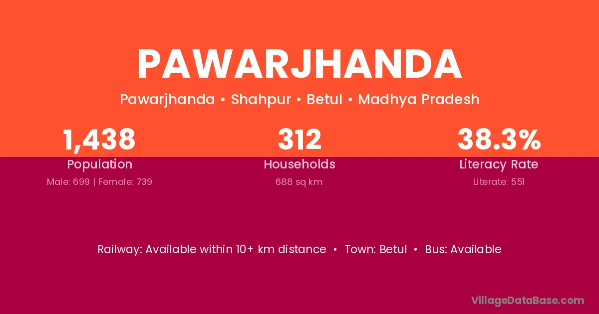 Pawarjhanda village has a total population of 1,438 people, of which 699 are males and 739 are females.