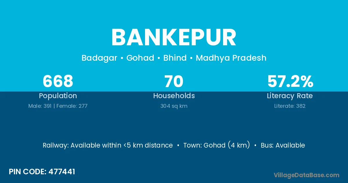 Gohad (4 km) is the nearest town to Bankepur village for major economic activities and is located approximately 4 km away.
