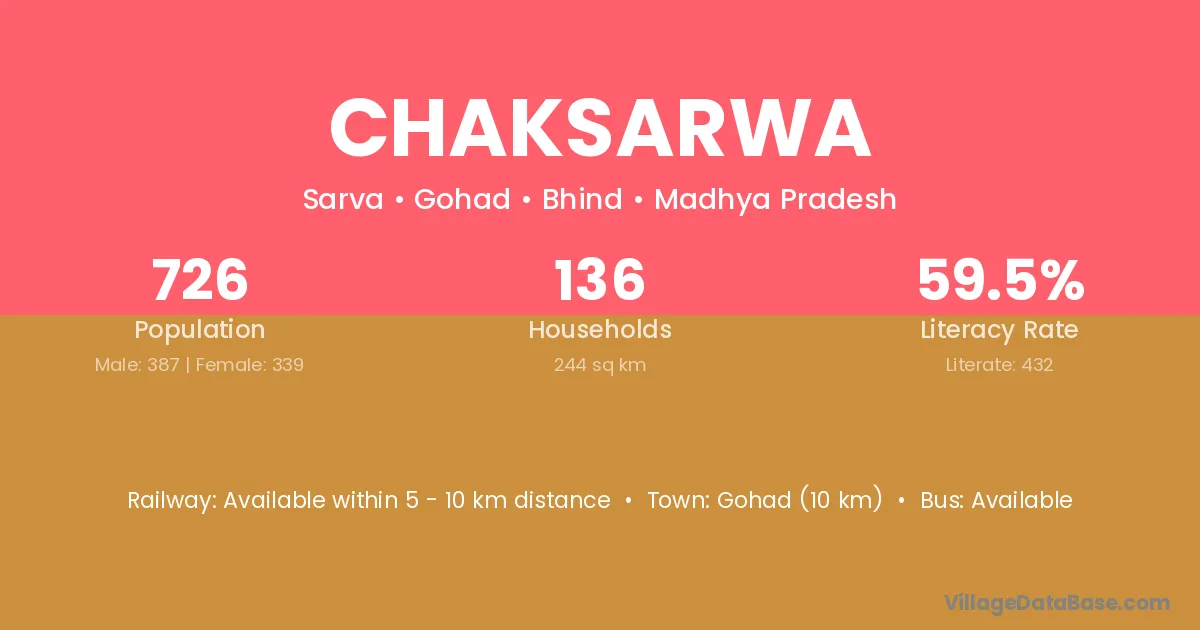 Gohad (10 km) is the nearest town to Chaksarwa village for major economic activities and is located approximately 10 km away.