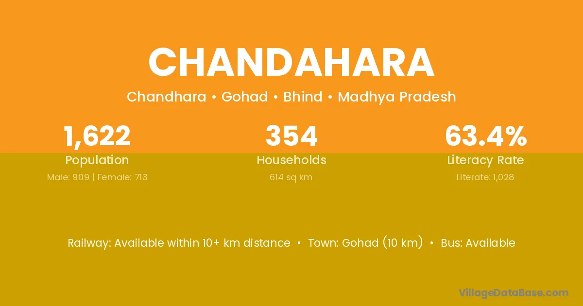 Gohad (10 km) is the nearest town to Chandahara village for major economic activities and is located approximately 10 km away.