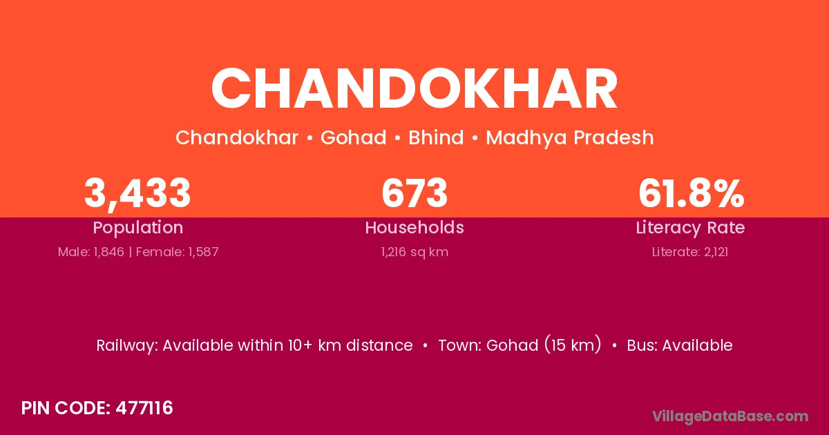 Gohad (15 km) is the nearest town to Chandokhar village for major economic activities and is located approximately 15 km away.