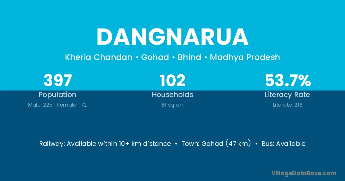 Gohad (47 km) is the nearest town to Dangnarua village for major economic activities and is located approximately 47 km away.