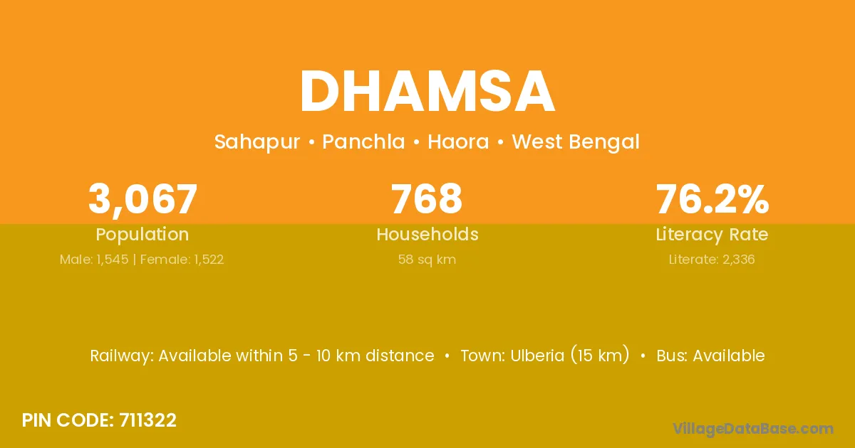 Gohad (15 km) is the nearest town to Dhamsa village for major economic activities and is located approximately 15 km away.