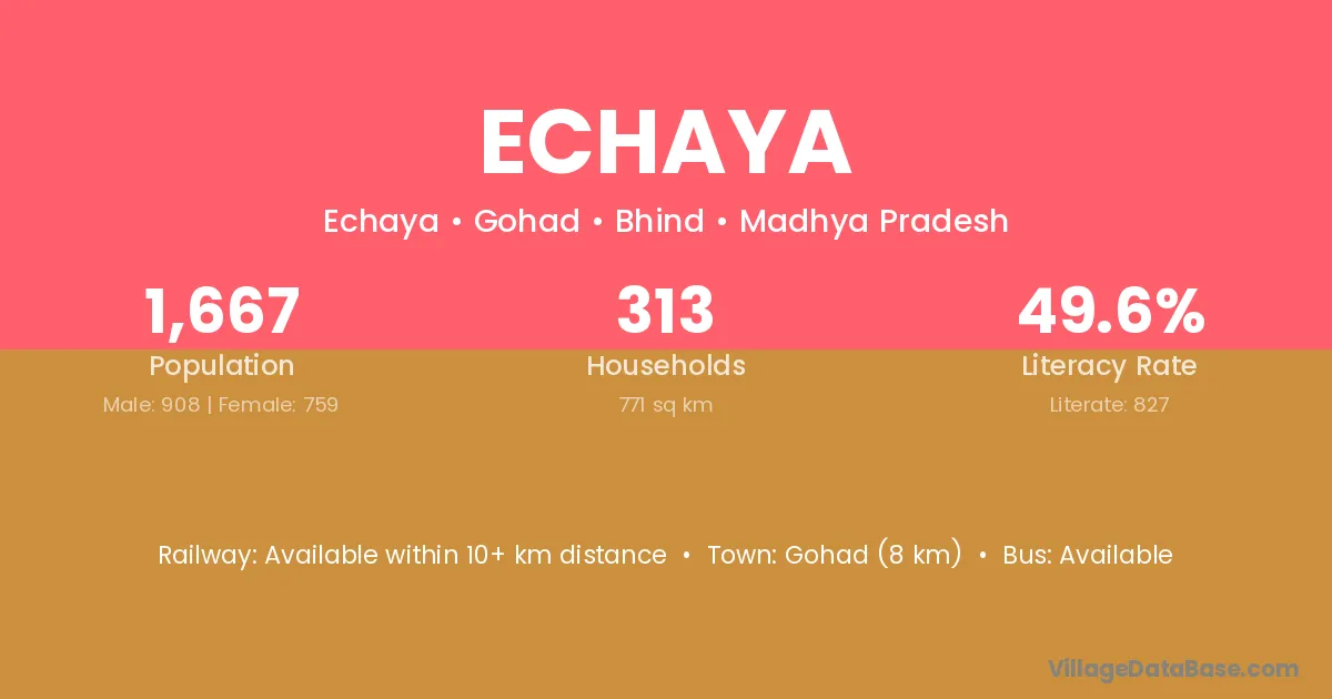 Gohad (8 km) is the nearest town to Echaya village for major economic activities and is located approximately 8 km away.