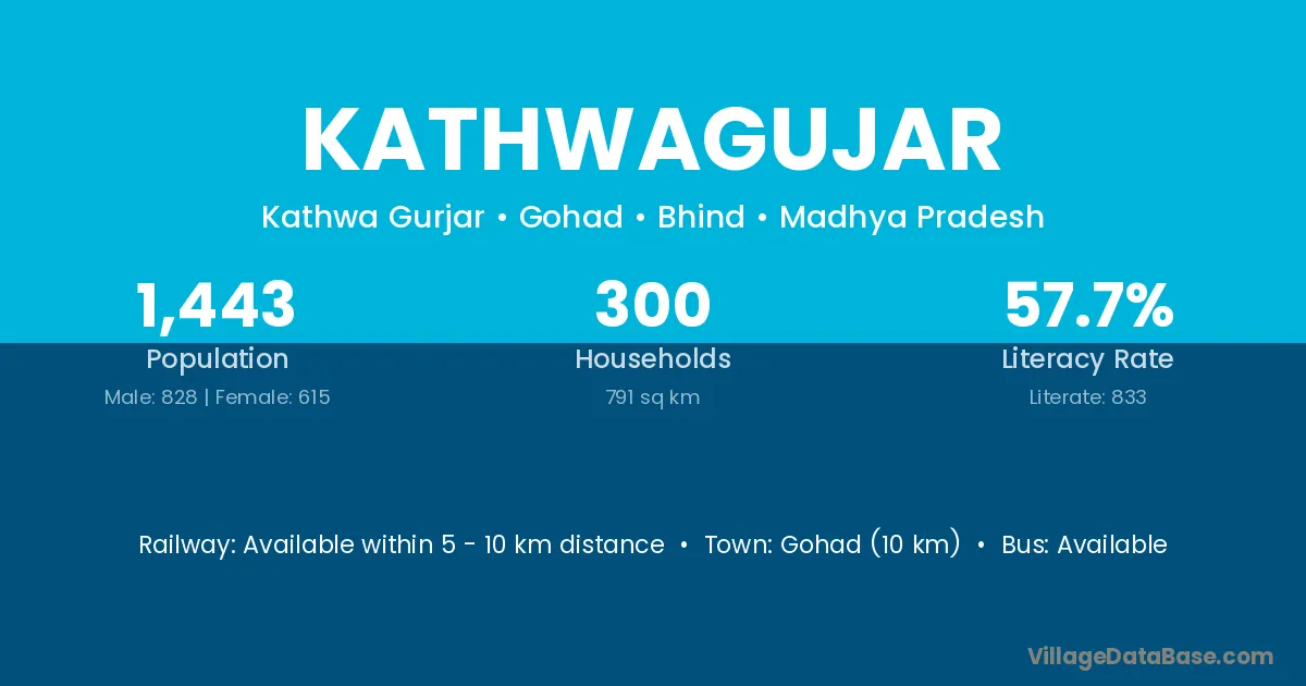 Gohad (10 km) is the nearest town to Kathwagujar village for major economic activities and is located approximately 10 km away.