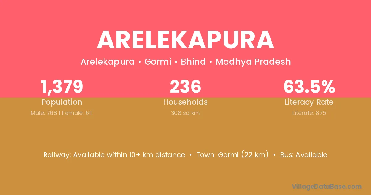 Gormi (22 km) is the nearest town to Arelekapura village for major economic activities and is located approximately 22 km away.