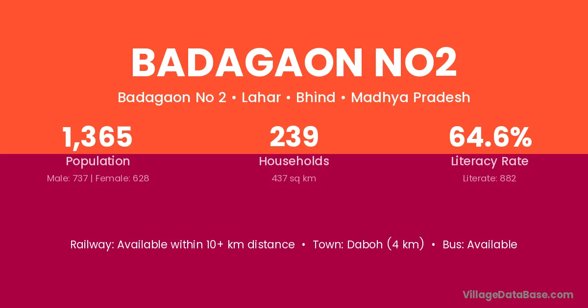 Daboh (4 km) is the nearest town to Badagaon No2 village for major economic activities and is located approximately 4 km away.