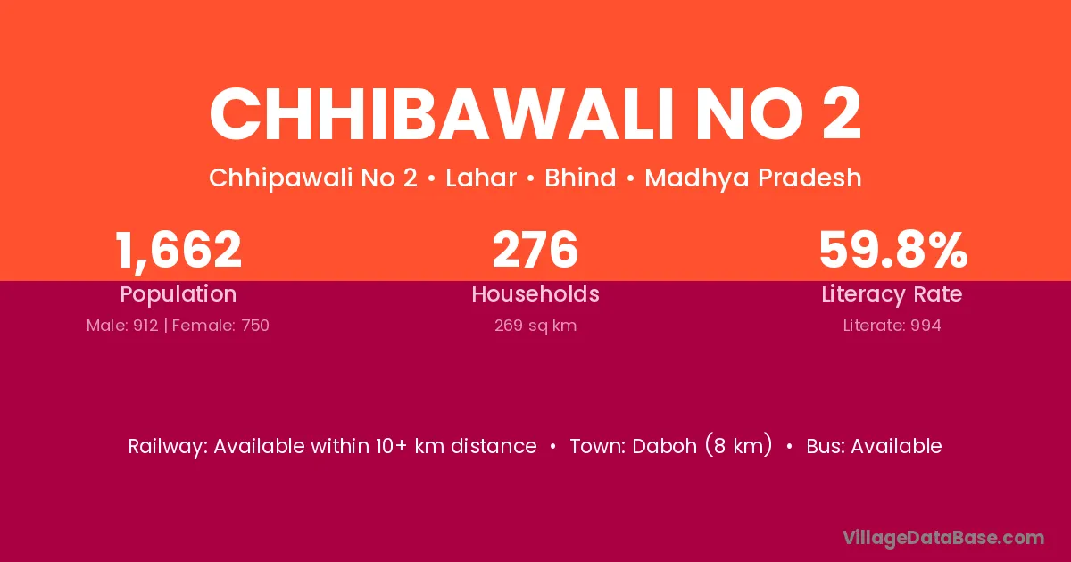 Chhibawali No 2 village has a total population of 1,662 people, of which 912 are males and 750 are females.