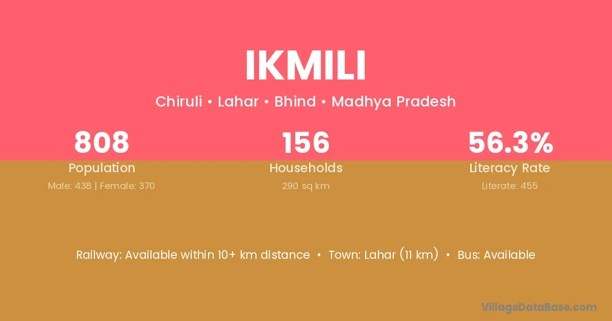 Lahar (11 km) is the nearest town to Ikmili village for major economic activities and is located approximately 11 km away.