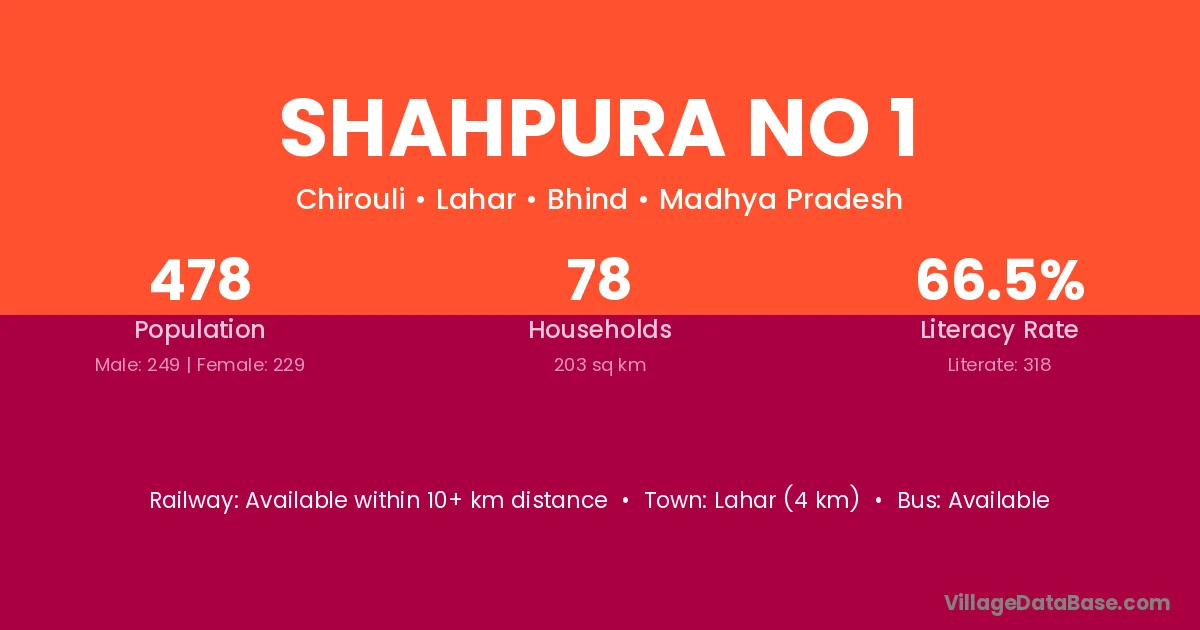 Lahar (4 km) is the nearest town to Shahpura No 1 village for major economic activities and is located approximately 4 km away.