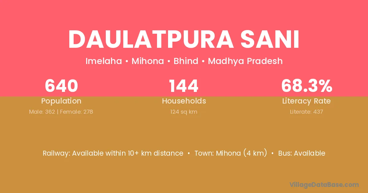 Mihona (4 km) is the nearest town to Daulatpura Sani village for major economic activities and is located approximately 4 km away.