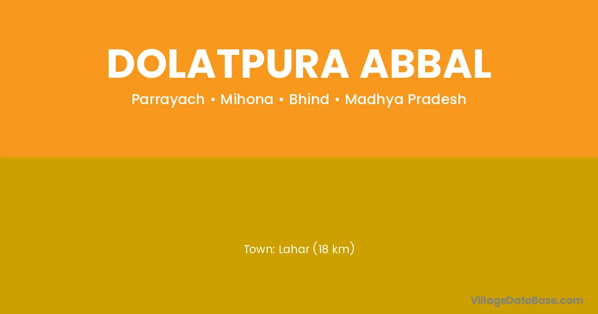 Lahar (18 km) is the nearest town to Dolatpura Abbal village for major economic activities and is located approximately 18 km away.