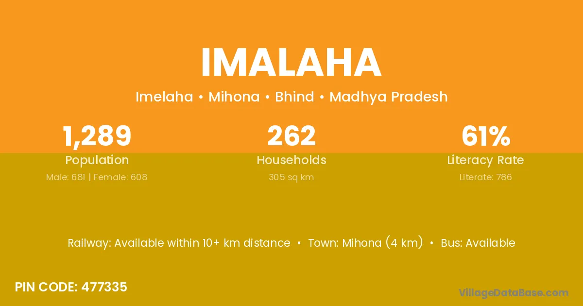 Imalaha village has a total population of 1,289 people, of which 681 are males and 608 are females.