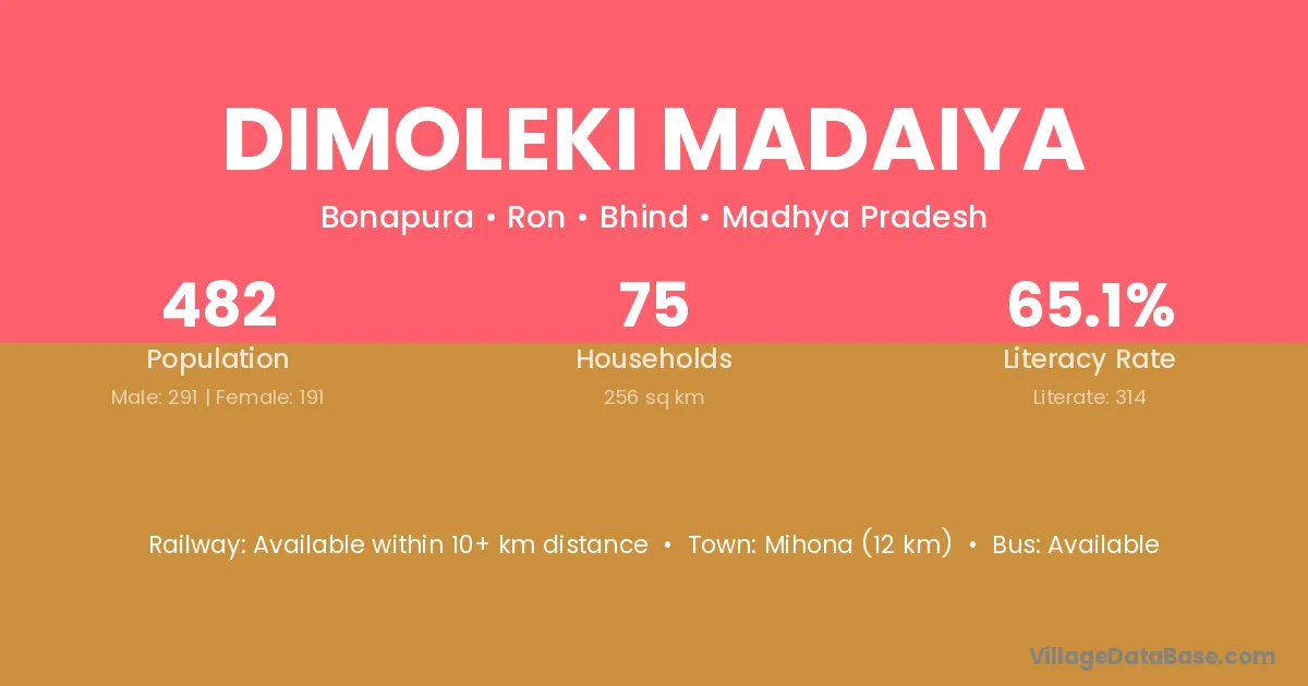 Dimoleki Madaiya village has a total population of 482 people, of which 291 are males and 191 are females.