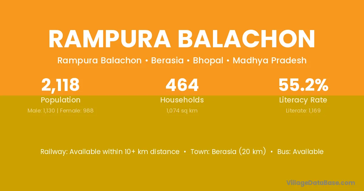 Berasia (20 km) is the nearest town to Rampura Balachon village for major economic activities and is located approximately 20 km away.