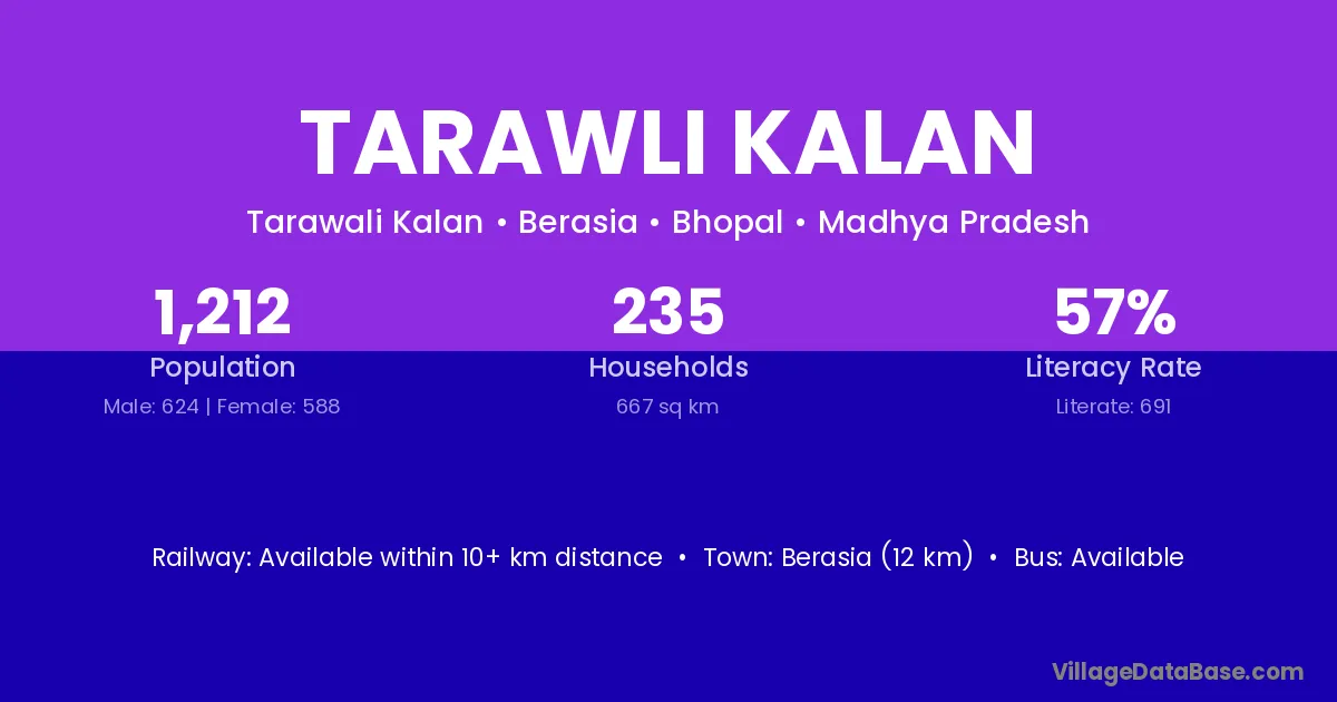 Berasia (12 km) is the nearest town to Tarawli Kalan village for major economic activities and is located approximately 12 km away.