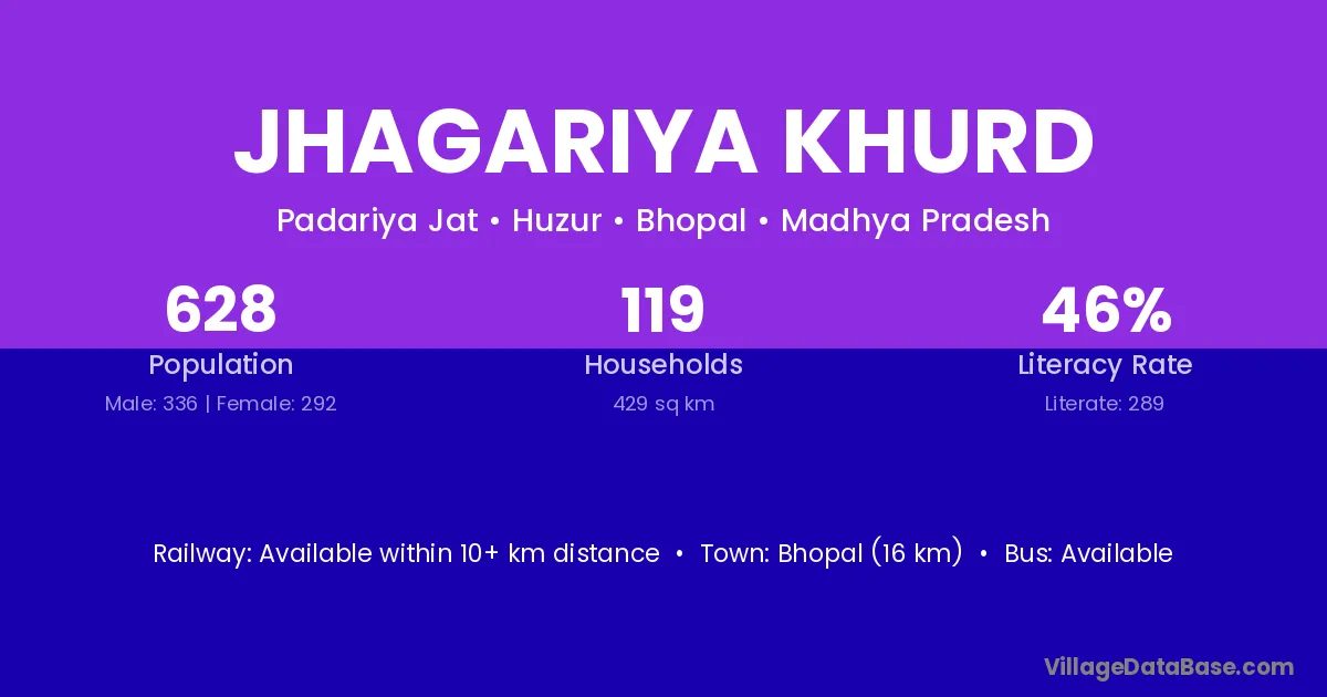 Bhopal (16 km) is the nearest town to Jhagariya Khurd village for major economic activities and is located approximately 16 km away.