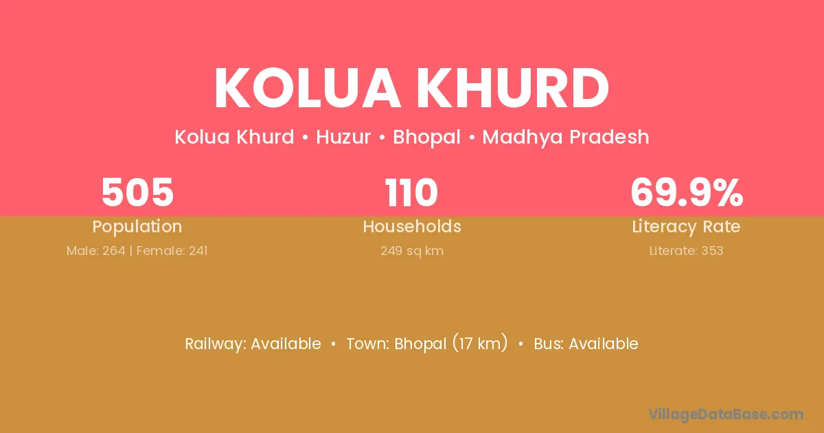 Bhopal (17 km) is the nearest town to Kolua Khurd village for major economic activities and is located approximately 17 km away.