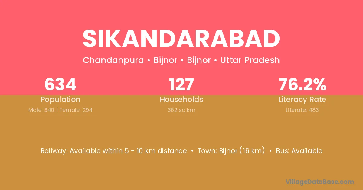 Sikandarabad village has a total population of 1,316 people, of which 664 are males and 652 are females.