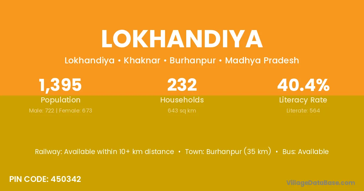 Burhanpur (35 km) is the nearest town to Lokhandiya village for major economic activities and is located approximately 35 km away.