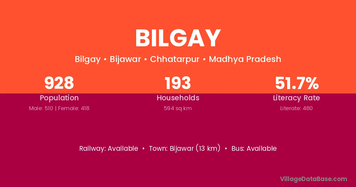 Bijawar (13 km) is the nearest town to Bilgay village for major economic activities and is located approximately 13 km away.