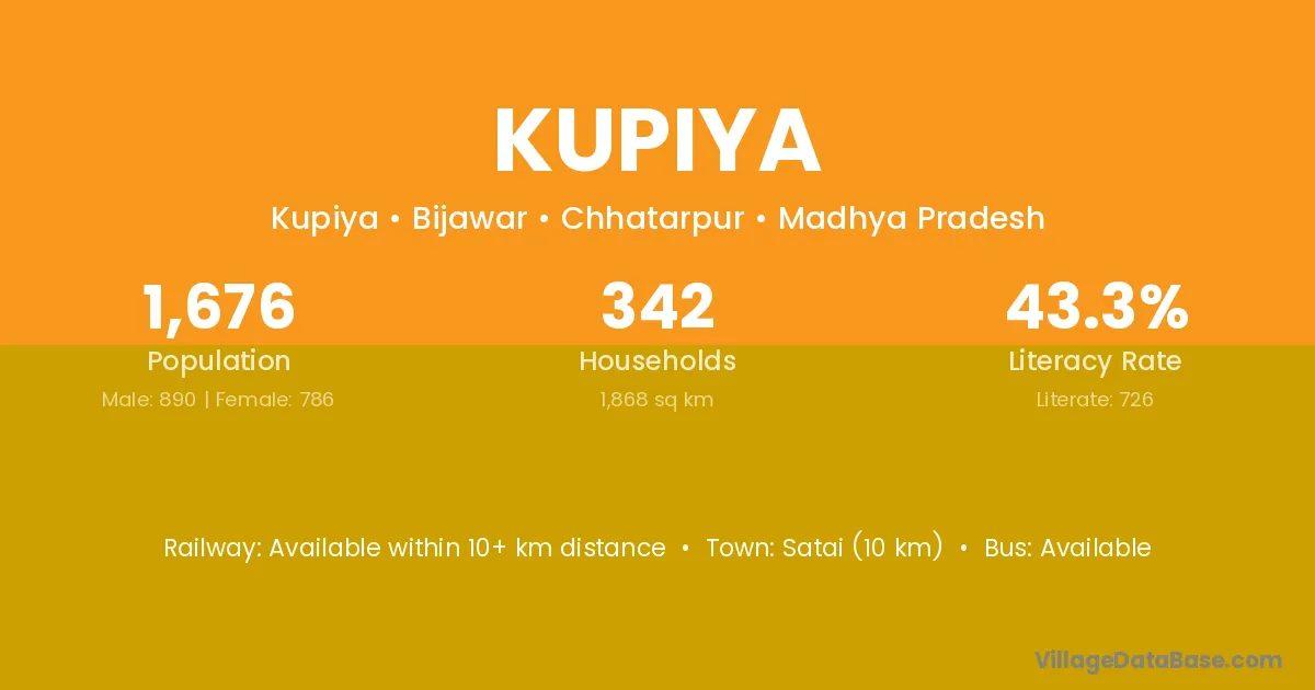 Satai (10 km) is the nearest town to Kupiya village for major economic activities and is located approximately 10 km away.