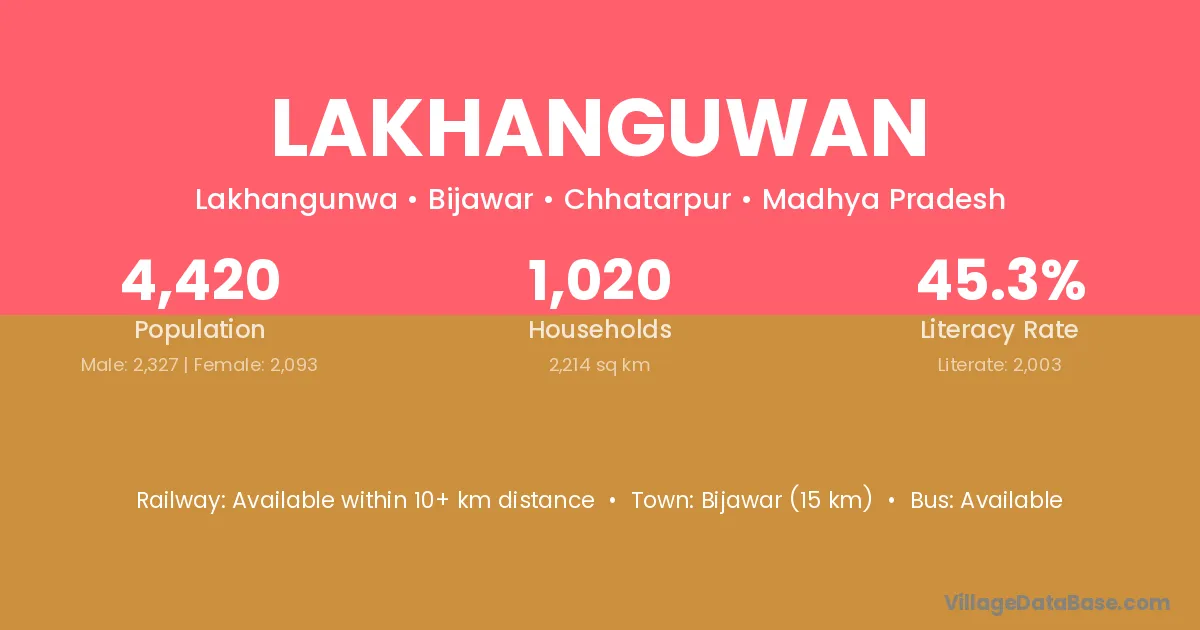 Lakhanguwan village has a total population of 4,420 people, of which 2,327 are males and 2,093 are females.