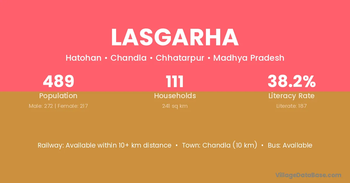 Chandla (10 km) is the nearest town to Lasgarha village for major economic activities and is located approximately 10 km away.