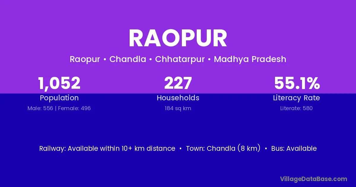 Chandla (8 km) is the nearest town to Raopur village for major economic activities and is located approximately 8 km away.